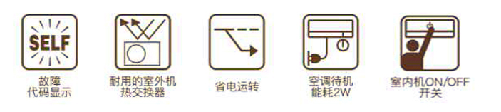 冷/熱康達效應氣流,3D氣流,康達效應舒睡,日程設定,定時定溫,0.5度控制,極速運轉,強力運轉,室內機靜音運轉,防霉運轉,省電運轉,超低待機能耗僅2W,易清潔面板更貼心。 ◎ 一級能效 1匹/1.5匹, * 變頻一級能效,舒適更節能 * 遠程Wi-Fi智控,盡享暢快體驗 * 康達效應舒睡,舒適一鍵實現 * 3D立體氣流,室溫更均勻 * 室內外溫度顯示,自由切換 * 室內外機靜音運轉 |